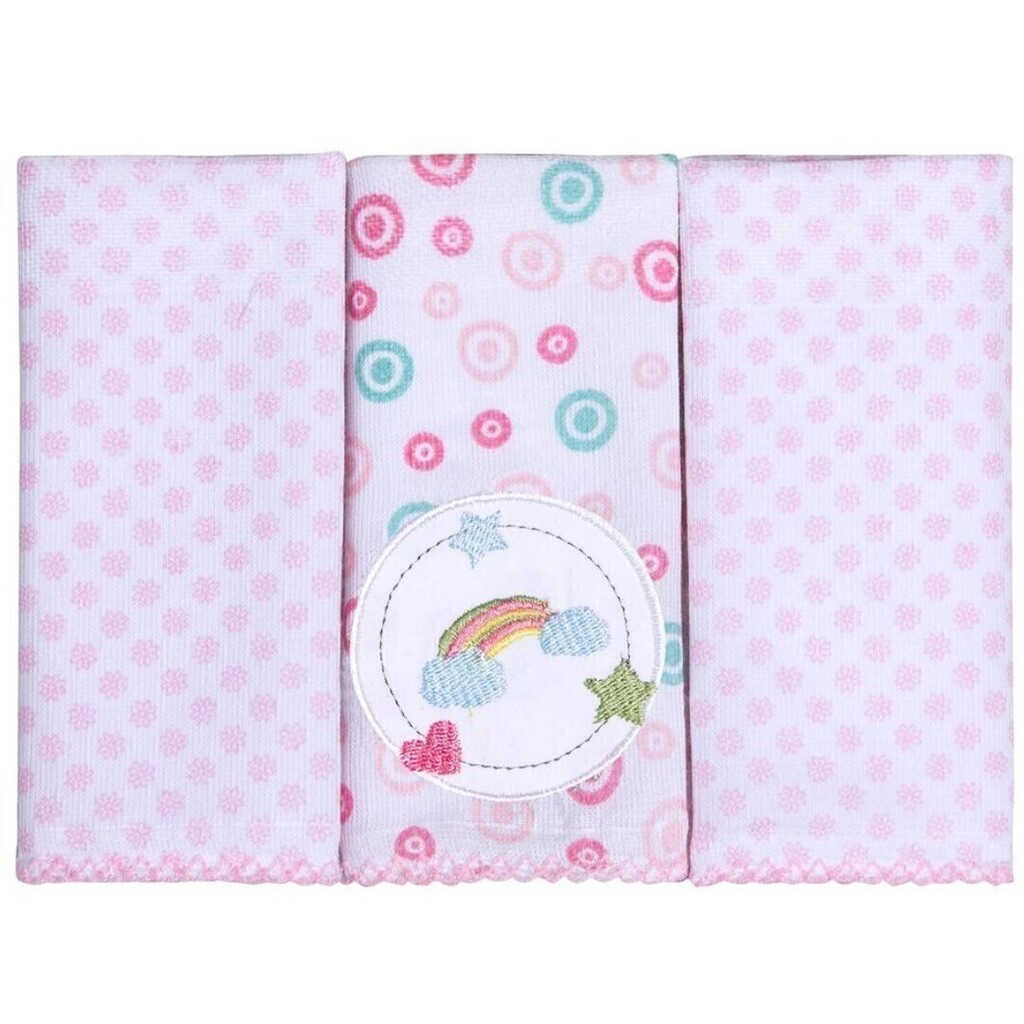 Paninho de Boca Bordados Karinho é extremamente prático, com tecido fralda 100% Algodão extra macio e absorvente. Elas são itens indispensáveis no enxoval do bebê, são usadas a todo momento, seja para limpar a boquinha, limpar a mãozinha, servir de paninho para a mamãe pôr no ombro na hora de arrotar. Seu tamanho é de 32cm x 32cm perfeito para levar em passeios com o bebê, com bordado delicado. Pacotes com 3 unidades